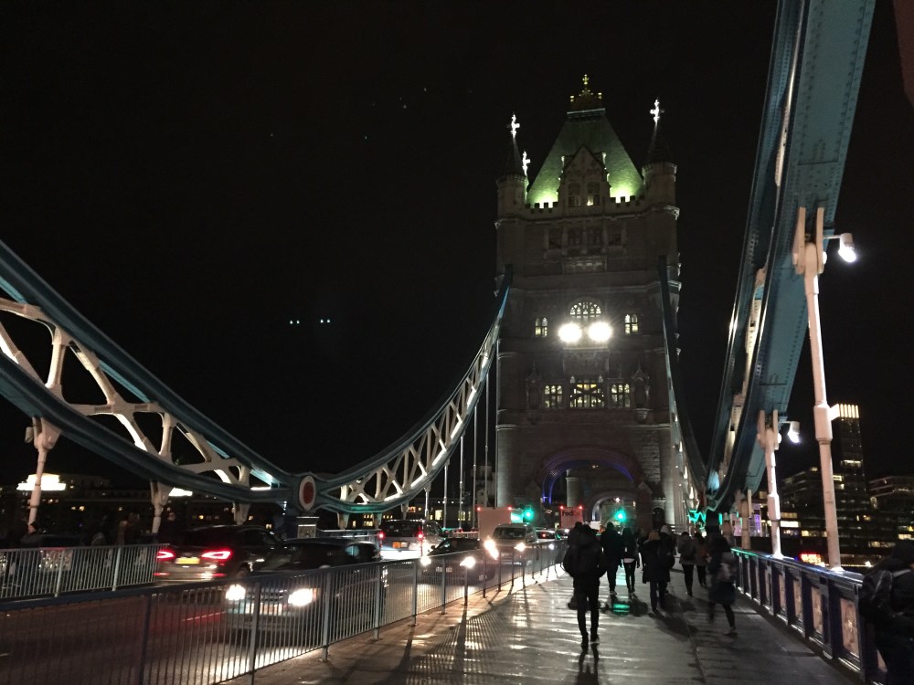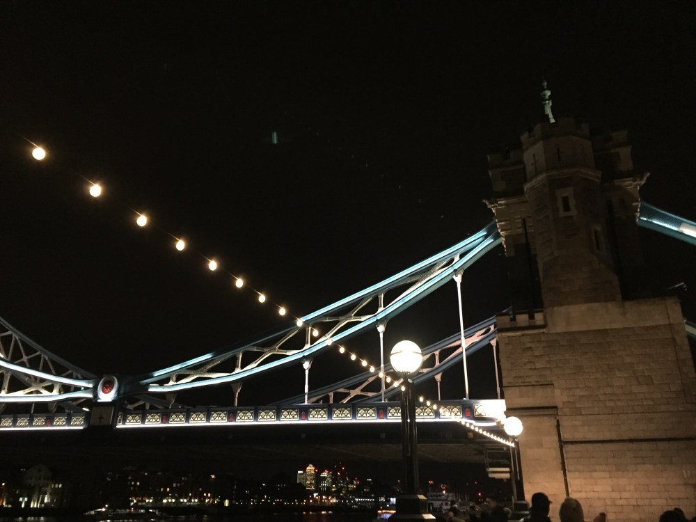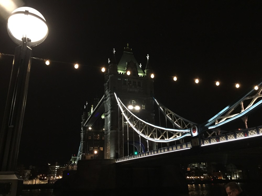 We worked some more and then Sandra met me near my office in St Katherine’s dock. We decided to take advantage of the night and walked across Tower Bridge and through a cute Christmas market.