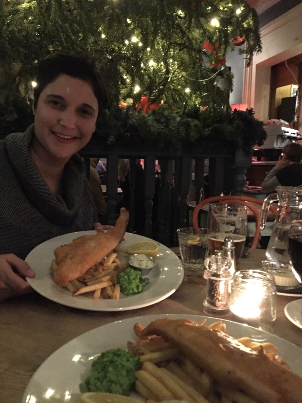 We couldn’t leave England without a proper Fish n Chips and mint smashed peas at our corner pub The Larrik. 😋😋😋