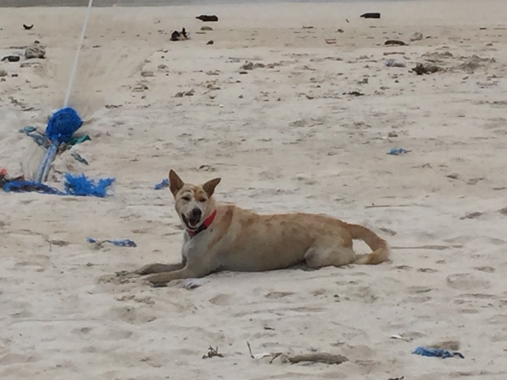 Beach dog with drawn on eyebrows. Poor baby. He did look hilarious though: