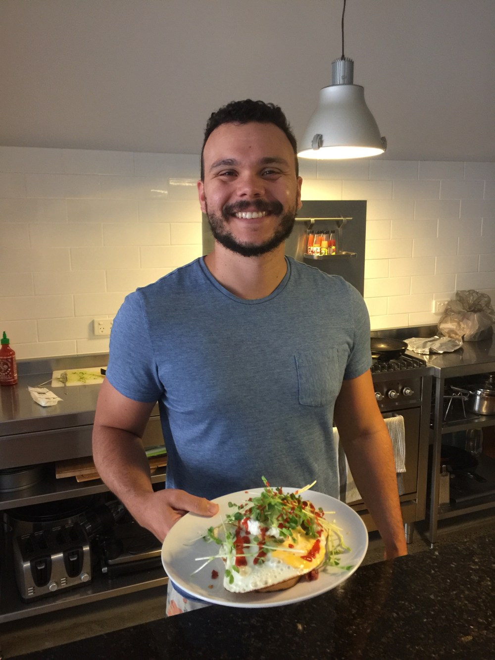 We had a lazy start this morning. We were supposed to wake up early and go to have brekky (also known as breakfast) around the corner. That didn’t happen, instead, our own personal chef conjured this delicious dish: