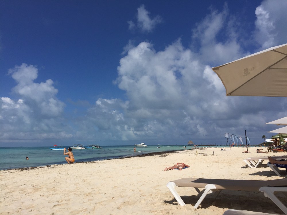 There’s not much to say here. We’re pretty much in time-adjustment mode. We wake up. We eat. We go to the beach. We lounge. We put sun block. We get in the water. We watch the sunset. That’s the simple life of Isla Mujeres.